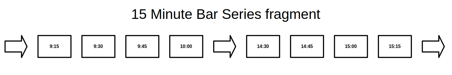 The diagram below shows a fragment of a 15-minute Bar Series — each box is a Bar, proudly displaying its Open Time.